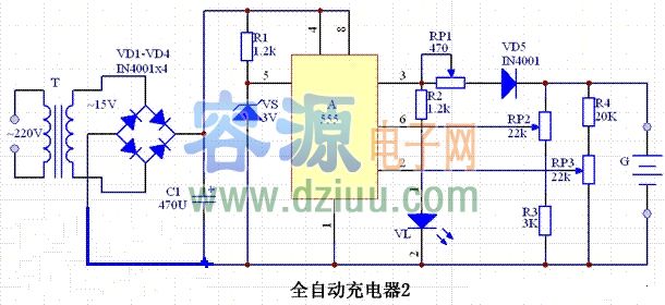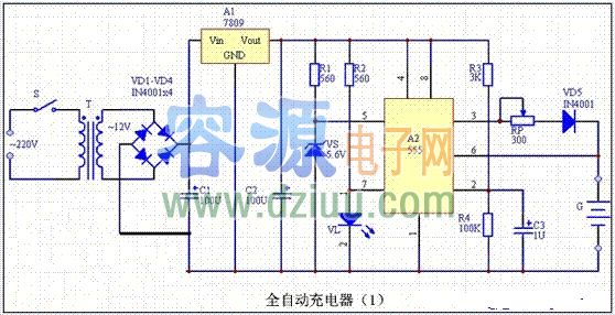 ,充電器主要由電源電路、電壓比較器及指示電路等組成。《版權聲明:本文由容源電子網(www_dziuu_com)整理提供,部分內容來源于網絡,如有侵犯到你的權利請與我們聯系更正。》