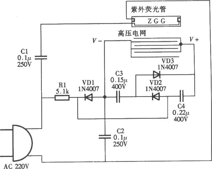 電子滅蚊燈電路圖: