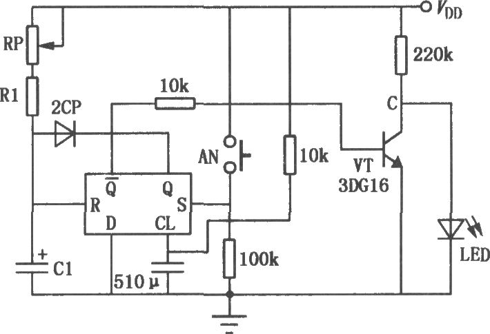 本電路是用CMOS電路D觸發器組成的定時器,最大的特點可調定時時間長,可以從1秒到幾十分鐘,應用非常廣泛,于繼電器延時釋放(自動熄燈)。比如可以應用到樓梯燈控制電路中。