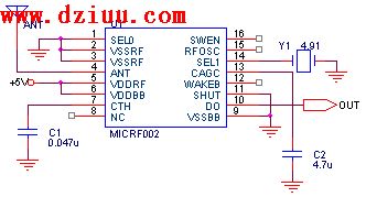 MICRF002為完整的單片超外差接收電路,基本實現(xiàn)了“天線輸入”之后“數(shù)據(jù)直接輸出”,接收距離