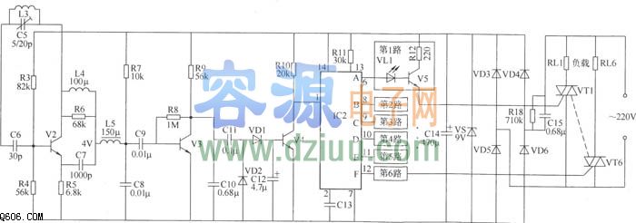 6m無線遙控開關(guān)電路 <<版權(quán)聲明:本文由容源電子網(wǎng)(www_dziuu_com)整理提供,部分內(nèi)容來源于網(wǎng)絡(luò),如有侵犯到你的權(quán)利請與我們聯(lián)系更正。》