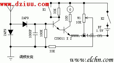 并沒有一個標準,但可以使你調試輕而易舉!你可以直接將探頭點測調制器的輸出端,更可以將探頭點測激勵級的輸出。 其中K1為增益選擇,K2為電源開關,W1靈敏度調節,本電路做好后放于鐵盒內,圖示的接地端接鐵盒。 <<版權聲明:本文由容源電子網(www_dziuu_com)整理提供,部分內容來源于網絡,如有侵犯到你的權利請與我們聯系更正!