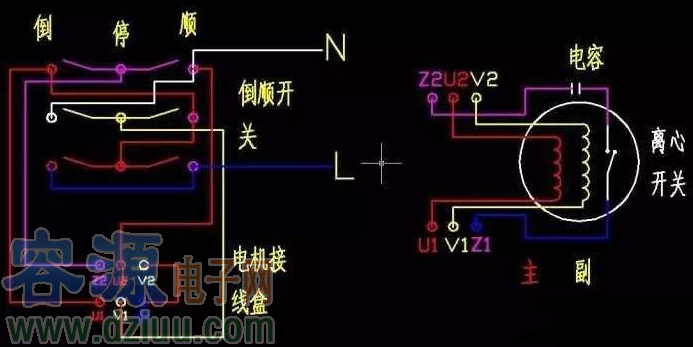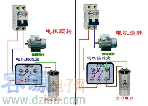 通過正反轉原理圖可以看出,只要改變單相電機電容兩端的接線方式就能改變電機的轉向,其實很簡單。