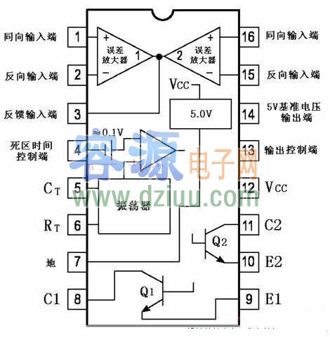 2、片內置線性鋸齒波振蕩器,外置振蕩元件僅一個電阻和一個電容;