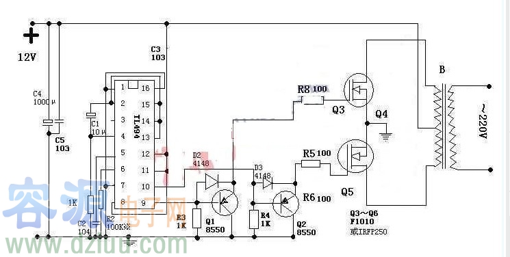 簡單自制tl494逆變器電路圖50hz輸出,大功率
