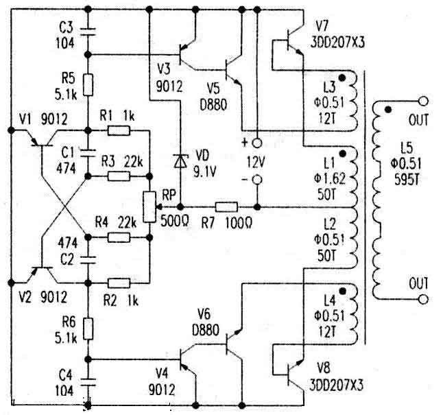 最簡單大功率500W晶體管逆變器電源電路圖
