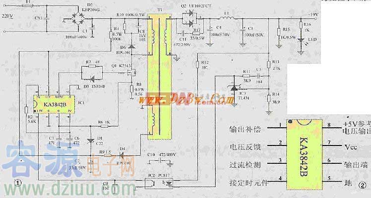 KA3842組成的筆記本電源適配器開關(guān)電源電路