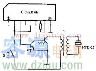 CIC2851AE是目前應用較為普遍的單曲音樂IC,它采用塑料封裝單列直插式,共有9個輸出腳,缺角處為第1腳。晶體管BG在這里起音頻功效放大作用,BG最好采用集電極耗散功率大于300mW的硅NPN型三極管,如3DX201、3DG12、