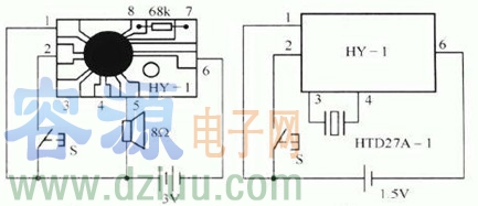 HY-1音樂集成電路內存一首樂曲。當觸發端受脈沖觸發后立即輸出音樂信號,樂曲程序結束時工作自行停止。當觸發端與觸發電平相連時,電路反復嗚奏,直到脫離觸發電平且正常演奏的樂曲程序結束后才自行停止。電路內