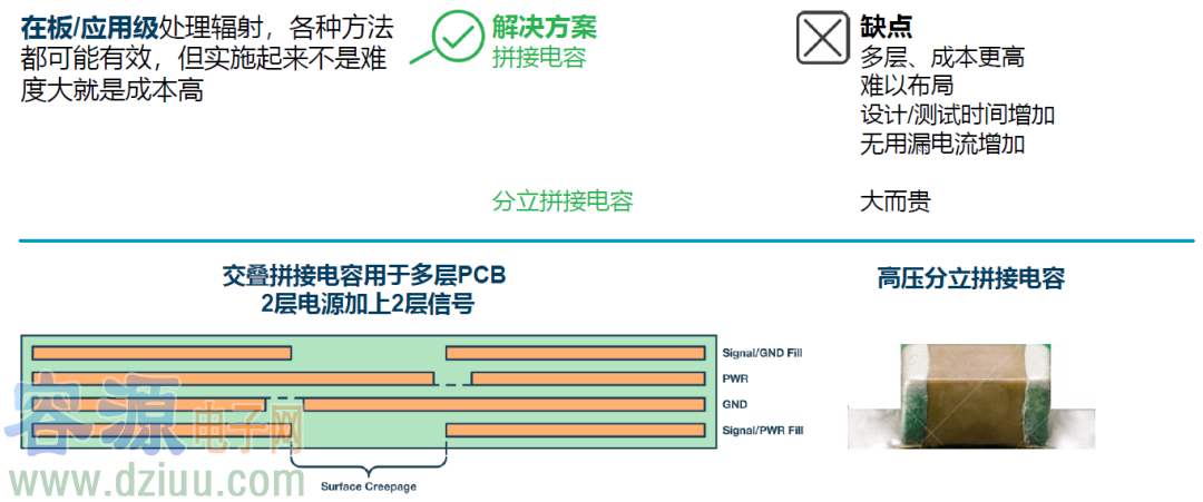 拼接電容:為減少偶極輻射,需要為高頻共模電流提供一個低阻抗返回路徑
