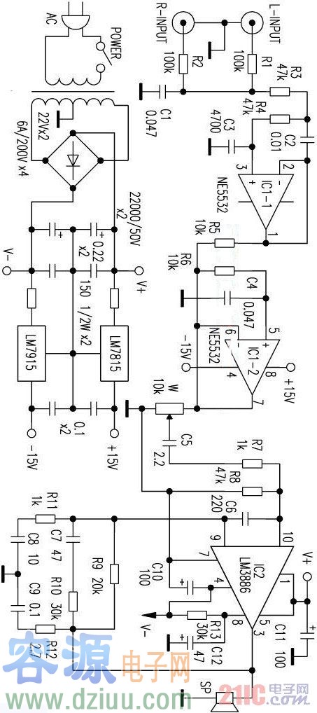 LM3886制作的超重低音電路
