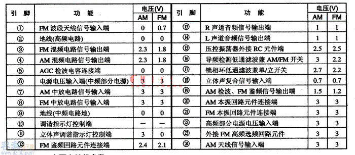 表1-1 KA2292集成電路的引腳功能及數據