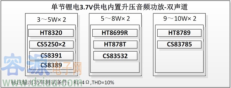 2.5V-5.5V供電內置升壓音頻功放選型表-雙聲道