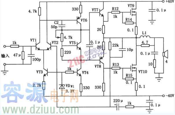 大功率80W音頻功率放大器電路圖