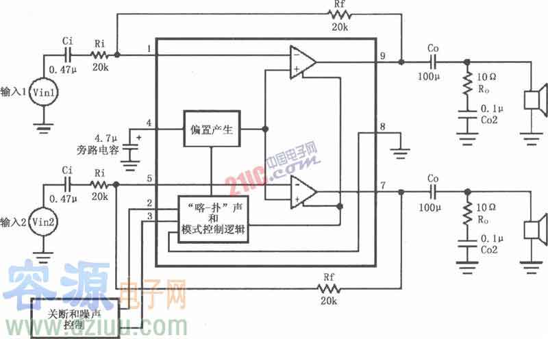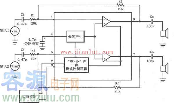 雙聲道音頻功放集成電路圖