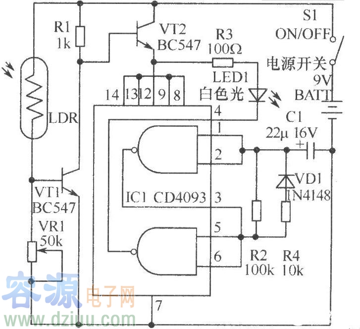 一款自制光控LED照明燈電路圖