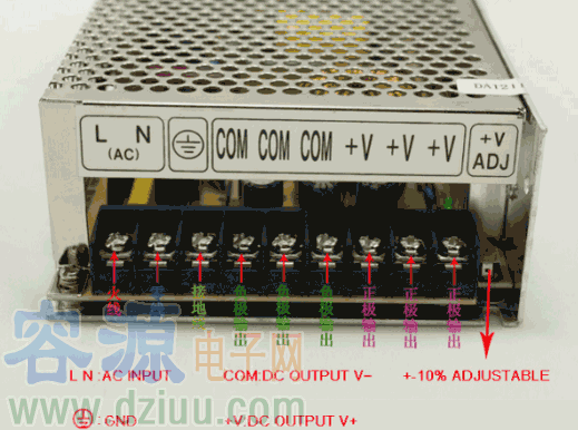 (1) 嚴格按照電源輸出端子所指示的接線位置接線,接線要牢固,確 定輸入輸出線不要接反(輸入“220VAC”接市電;輸出“+”接負載正極,輸出“-”接負" />