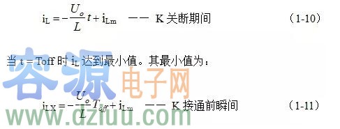 iLm =(Ui-Uo)Ton/L + i(0) —— K關斷前瞬間 (1-6)