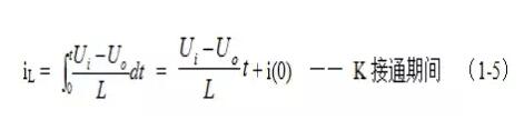 式中–Uo前的負號,表示K關斷期間電感產生電動勢的方向與K接通期間電感產生電動勢的方向正好相反。對(1-7)式進行積分得: