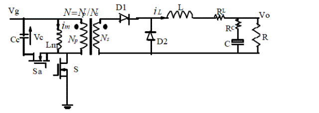 (1):有源去磁正激變換器的電路圖: