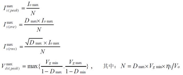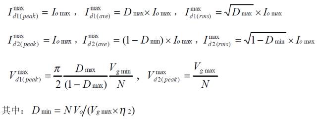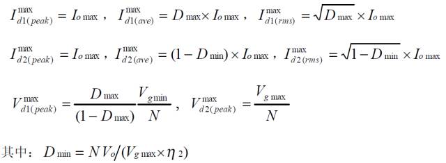 對稱驅動半橋變換器的功率器件設計公式![]()