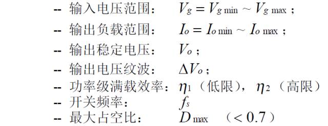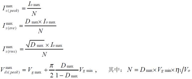 上述公式是穩態工作時,功率器件上的電壓、電流應力。選擇功率器件時,其電壓耐量可放一個合適的余量(保證最壞情況下的電壓峰值不超過此值),電流耐量則得按器件的結溫降額要求決定、它與外部散熱條件和器件的通態電阻、通態壓降、結電容、反向恢復、結到殼的熱阻等密切相關,是功率器件熱設計的內容,將在以后的欄目中介紹。