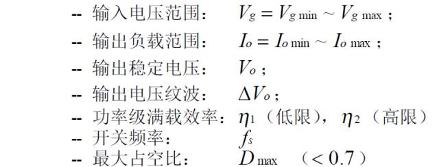 (2):諧準去磁正激變換器的主要穩態規格: