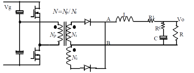 (1):對稱驅動半橋變換器的電路圖: