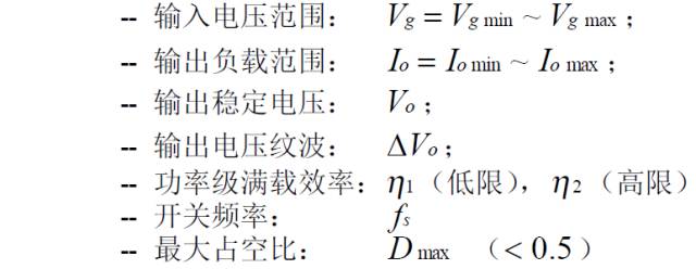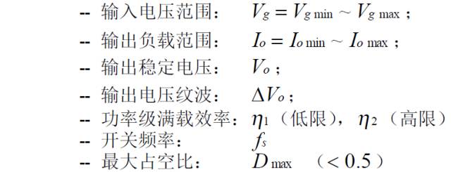 (2):對稱驅動推挽變換器的主要穩態規格: