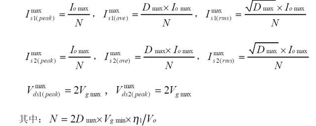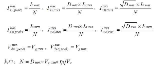對稱驅動推挽變換器的功率器件設計公式![]()