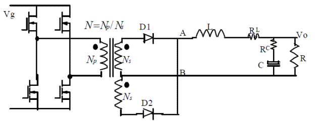 (1):對稱驅動全橋變換器的電路圖: