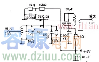 如圖所示是低噪聲雙柵FET構成的144MHz窄帶放大器,輸入輸出側都采用諧振電路,諧振于144MHz,帶寬約為5MHz,它由諧振電路的有載Q值決定。 :