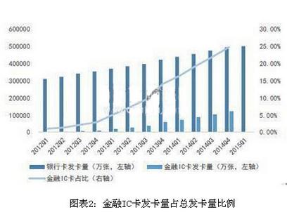 數據顯示,截止2015Q1,總的發卡量已達到50億。在金融IC卡方面,截止2014年,金融IC卡總的發卡量已達12億張。2014年新增發卡量中,金融IC卡占到了87%。