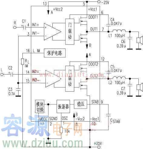 • 20W+20W立體聲放大器原理圖 日期:2020-04-20 作者:電子愛好者 來源:不詳