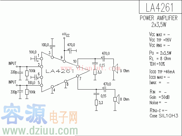lm380集成功放電路圖:有了這個簡單的電路圖,你可以使用立體聲來驅動一個8Ω的揚聲器。