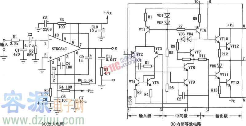 基于STK084G的50W厚膜功放電路圖及其原理