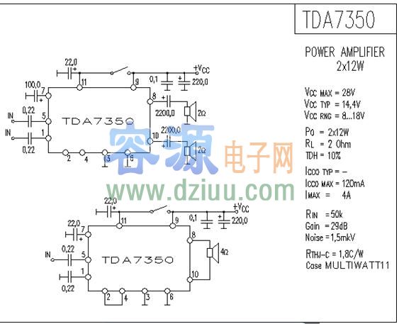 基于TDA7240A制作的20W單電源BTL功放電路圖