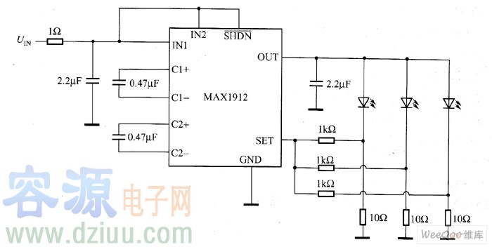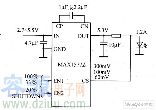 MAX1577V/MAX1577Z驅(qū)動白光LED電路圖