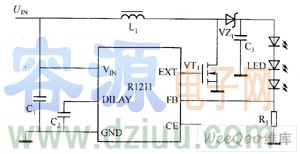 鋰離子電池供電驅(qū)動白光LED電路圖