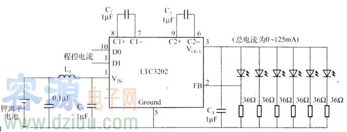 本文介紹了LTC3202是Linear TECHNOLOGY公司生產(chǎn)的不需要門控振蕩器的電荷泵,圖為采用LTC3202電荷泵的鋰離子電池供電驅(qū)動白光LED電路。